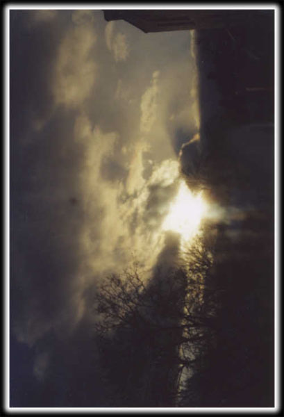 There is a Be-ing of Light in this photograph. An image of a man from another century is in the center of the upper half of the photo and below among the branches, a man with a long beard and black hooded garment is facing us.