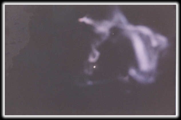 In Ectoplasm you see 3 white lines running across the photo taken at a graveyard in Northampton, Massachusetts. It looks like an A . There was no light. Ectoplasm is the outer cytoplasm of a cell.