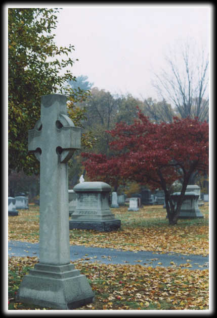 JC is a photograph that was taken in a cemetery in Holyoke, MA in 2006. There is a life-size white statue in the middle to the left. Only the back of the statue is facing us. There was no statue there in the past and there has not been one since. This is one of several manifestations of statues that have appeared in our photos and have remained in them. We have several more we will be adding to the site in the future. |