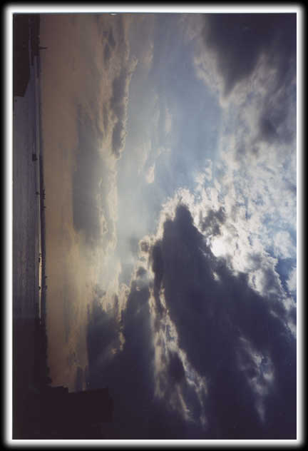 In the Migration photograph we see a family ascending into the heavens. There is a father with a small boy of five or six and a mother with her baby on her left. You can actually see the rope she is holding with a fish attached to it. Slightly above the father on his right is an angel with a sword leading them. There are also several people gathered in the corners of the photo observing. This photograph was taken in Brooklyn, New York. |