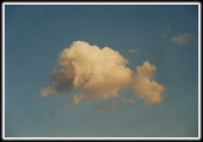 On a beautiful spring day in 2002, Mr. Williams took a photograph of a unique cloud formation. We often look up at the sky and see images of animals and people but we rarely see them with such color and clarity! This picture was taken in Northampton, MA. If you look at it carefully you can actually see the poodle carrying a black/brown kitten in its mouth. |